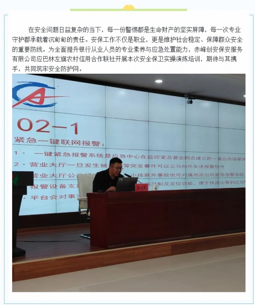 【創(chuàng)安保安】 巴林左旗農(nóng)村信用合作聯(lián)社安全保衛(wèi)暨實操演練培訓(xùn)完美收官